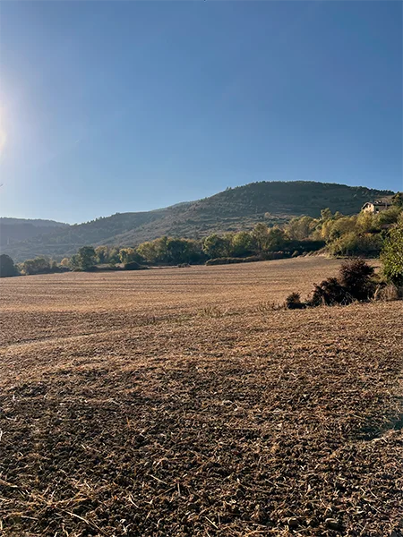 El entorno es un ejemplo claro del paisaje agrícola de Navarra. Es una llanura fértil junto al río, con campos de cultivo, hileras de arbustos y caminos entre los campos.